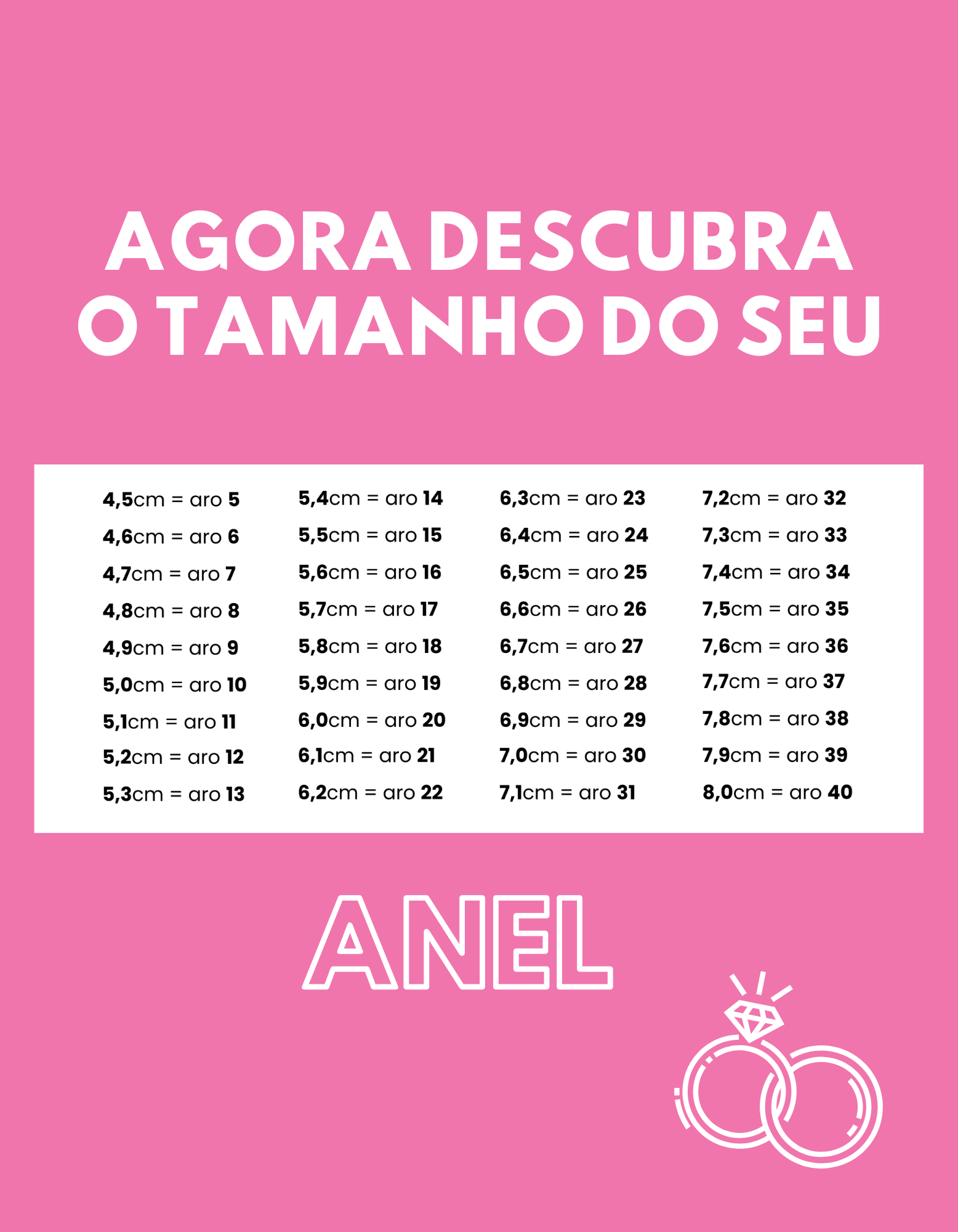 Compare a medida com a tabela de tamanhos abaixo e descubra sua numeração.